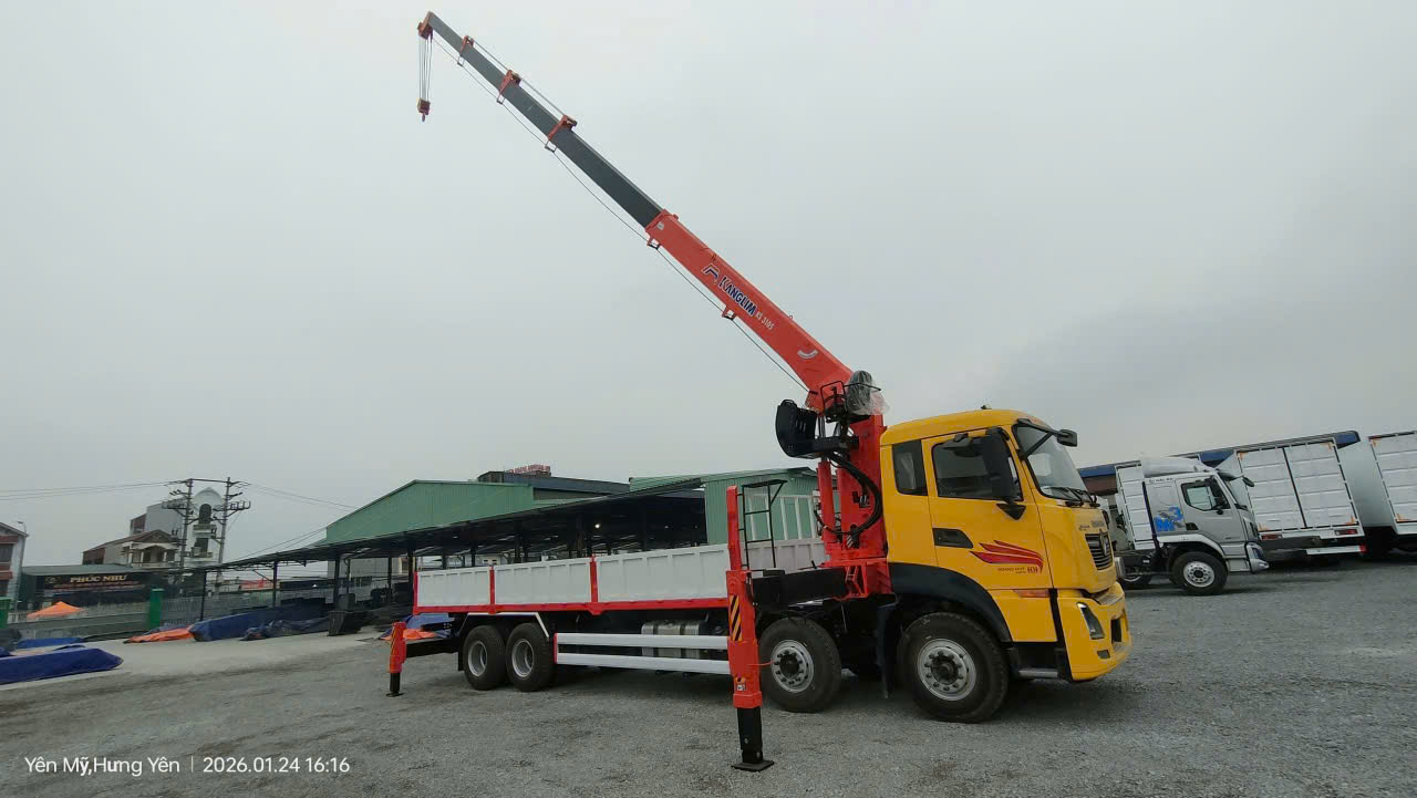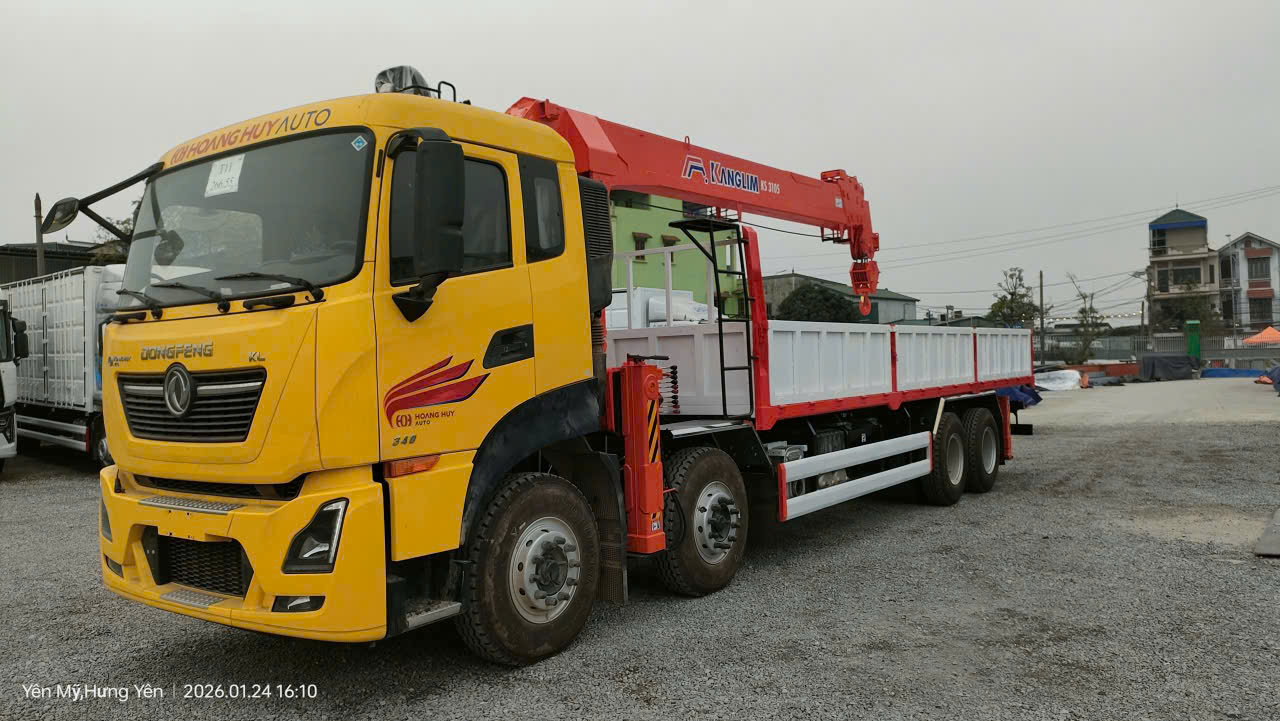 Xe Dongfeng Hoàng Huy 340HP gắn cẩu Kanglim 13 tấn